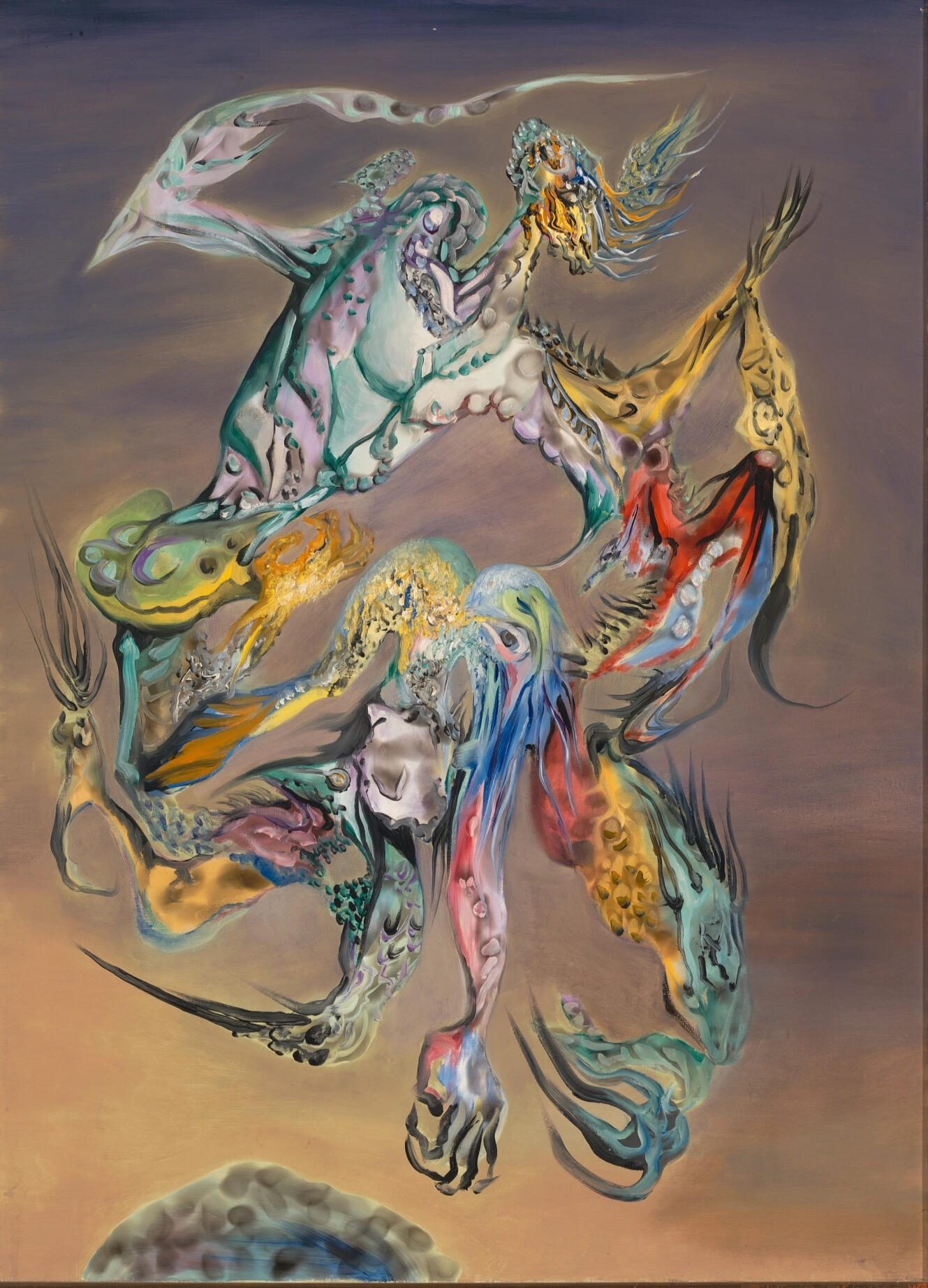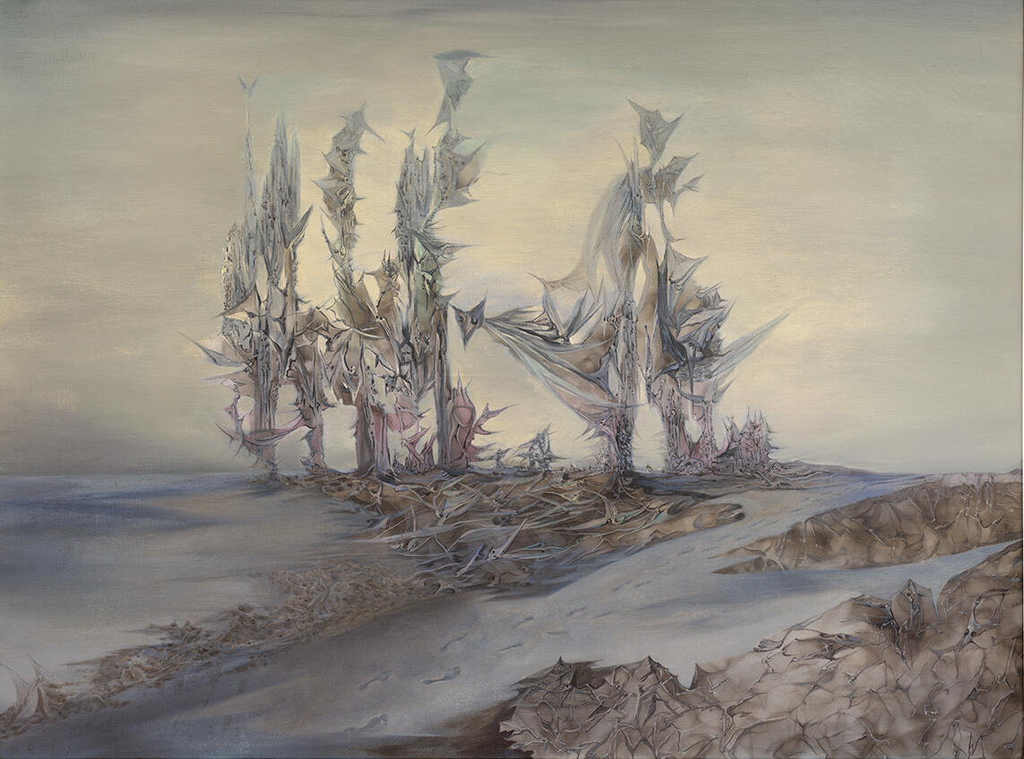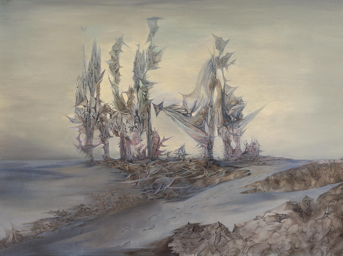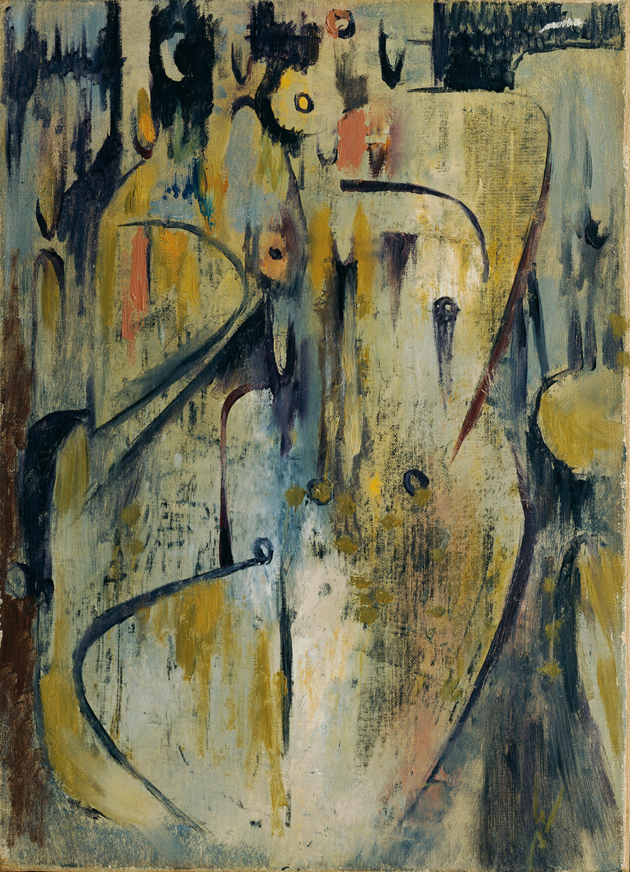 Early works combined Surrealist automatism with biomorphic abstraction, evoking dreamlike atmospheres and ambiguous spatial depth.